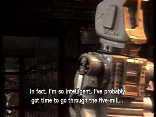 [Marvin] but I'm far too intelligent to expect anyone to think of me for a moment. [Marvin] In fact, I'm so intelligent, I've probably got time to go through the five-mill ... (ROCK MUSIC CRESCENDO) |