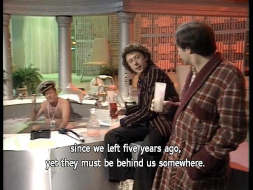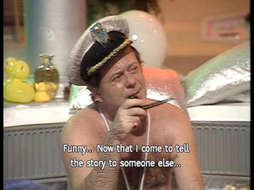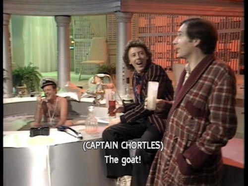 [Captain] since we left five years ago, yet they must be behind us somewhere. [Ford] Yes ... [Ford] Unless they're all eaten by the goat? [Captain] (CAPTAIN CHORTLES) The goat! [Captain] Funny ... Now that I come to tell the story to someone else ... |