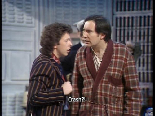 [Both] Crash?! [Captain] Some reason for it, but for the life of me I can't remember what it was. [Ford] You're all a load of useless bloody loonies! [Captain] Yes, that was it! That was the reason! |