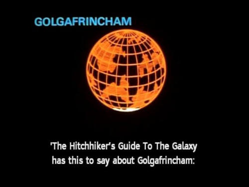DON'T PANIC! 'The Hitchhiker's Guide to the Galaxy has this to say about Golgafrincham: 'It is a planet with an ancient and mysterious history in which the most mysterious figures are those of the great circling poets of Arium. |