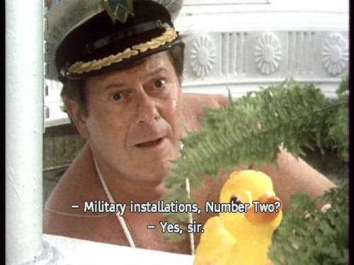 [Number Two] Yes. But there will be one day. [Number Two] So we've left an open-ended ultimatum. [Ford] What? [Number Two] And blown up a few military installations. [Captain] Military installations, Number Two? [Number Two] Yes, sir. [Number Two] Well, potential military installations. [Number Two] All right, trees. |