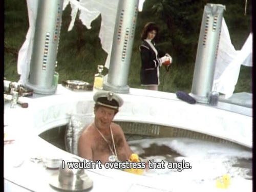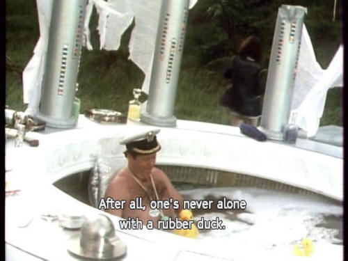 [Marketing Girl] The burden of responsibility, the loneliness of command ... [Captain] I would overstress that angle. [Captain] After all, one's never alone with a rubber duck. [Manager] If we could move on to the subject of fiscal policy? [Ford] Fiscal policy? |