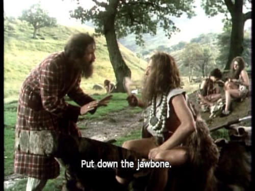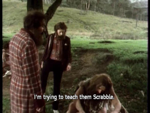 [Ford] No, no, please! [Arthur] Put down the jawbone. [Arthur] All right, we'll start again. Please try and concentrate this time. [Ford] Hi, Arthur, what are you doing? [Arthur] I'm trying to teach them Scrabble. |