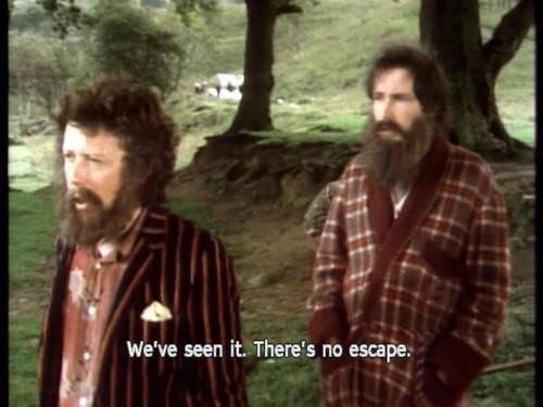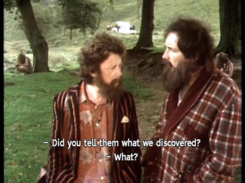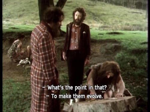 [Arthur] It's uphill work. The only word they know is "Ugh," and they can't spell it. [Ford] What's the point in that? [Arthur] To make them evolve. [Arthur] Imagine a world descended from those cretins over there! [Ford] We don't have to, we've seen it. [Arthur] But honestly! [Ford] We've seen it. There's no escape. [Arthur] Did you tell them what we discovered? [Ford] What? |