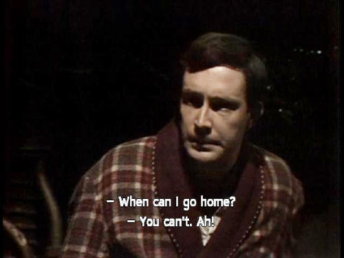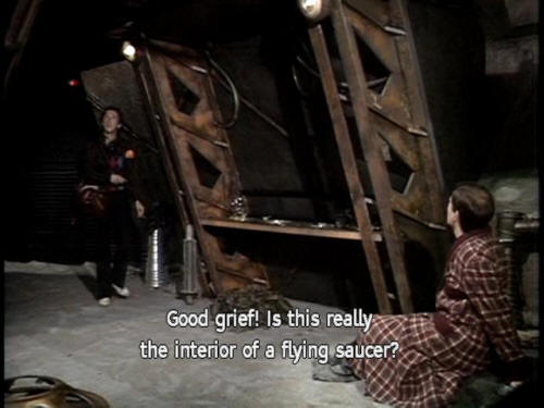 [Arthur] When can I go home? [Ford] You can't. Ah! [Arthur] Good grief! Is this really the interior of a flying saucer? [Ford] Yes. What do you think? |