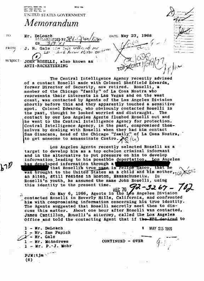 Allen Dulles, the son of a Presbyterian minister, and the brother of John Foster Dulles, was born in Washington in 1893. His grandfather was John Watson Foster, Secretary of State under President Benjamin Harrison. His uncle, Robert Lansing, was Secretary of State in the Cabinet of President Woodrow Wilson. After attending Princeton University he joined the diplomatic service and served in Vienna, Berne, Paris, Berlin and Instanbul. In 1922 he was appointed as chief of Division of Near Eastern Affairs. During the Second World War Dulles served in Europe with the Office of Strategic Services (OSS) under William Donovan. The organization that was given the responsible for espionage and for helping the resistance movement in Europe. Dulles was stationed in Switzerland and was able to use his base in this neutral country to obtain important information on Nazi Germany and the Gestapo. As soon as the Second World War ended President Harry S. Truman ordered the OSS to be closed down. However, it provided a model for the Central Intelligence Agency (CIA) established in September 1947. Dulles joined the CIA and became director of the organization in 1953. Under his leadership the CIA had success in assisting right wing coups in Guatemala and Iran. His attempts to oust against Fidel Castro ended in failure and was forced to resign after the Bay of Pigs disaster. Dulles published The Craft of Intelligence (1963). After the death of John F. Kennedy Dulles served on the Warren Commission that investigated the assassination. Allen Dulles died of cancer in 1969. John Roselli (Filippo Sacco) first became involved in crime when he worked for Al Capone in the 1920s. By the end of the Second World War Roselli had emerged as a senior crime boss in Las Vegas with close links to Meyer Lansky. In 1947 the Federal Bureau of Investigation (FBI) identified him as a leading figure in the Mafia and a close associate of Santos Trafficante. In March I960, President Dwight Eisenhower of the United States approved a Central Intelligence Agency (CIA) plan to overthrow Fidel Castro. The plan involved a budget of $13 million to train "a paramilitary force outside Cuba for guerrilla action." The strategy was organised by Richard Bissell and Richard Helms. Sidney Gottlieb of the CIA Technical Services Division was asked to come up with proposals that would undermine Castro's popularity with the Cuban people. Plans included a scheme to spray a television studio in which he was about to appear with an hallucinogenic drug and contaminating his shoes with thallium which they believed would cause the hair in his beard to fall out. These schemes were rejected and instead Bissell decided to arrange the assassination of Fidel Castro. In September 1960, Richard Bissell and Allen W. Dulles, the director of the Central Intelligence Agency (CIA), initiated talks with two leading figures of the Mafia, Roselli (using the name John Rawlston) and Sam Giancana. On 12th March, 1961, William Harvey arranged for CIA operative, Jim O'Connell, to meet Sam Giancana, Santo Trafficante, Johnny Roselli and Robert Maheu at the Fontainebleau Hotel. During the meeting O'Connell gave poison pills and $10,000 to Rosselli to be used against Fidel Castro. As Richard D. Mahoney points out in his book: Sons and Brothers: "Late one evening, probably March 13, Rosselli passed the poison pills and the money to a small, reddish-haired Afro-Cuban by the name of Rafael "Macho" Gener in the Boom Boom Room, a location Giancana thought "stupid." Rosselli's purpose, however, was not just to assassinate Castro but to set up the Mafia's partner in crime, the United States government. Accordingly, he was laying a long, bright trail of evidence that unmistakably implicated the CIA in the Castro plot. This evidence, whose purpose was blackmail, would prove critical in the CIA's cover-up of the Kennedy assassination." In 1961 Roselli persuaded Meyer Lansky, to join the conspiracy and was reportedly offering a million-dollar reward for the Cuban leader's murder. Richard Cain, a specialist in electronics and wire taps, was also recruited by Roselli. Cain took part in a failed attempt in March 1961 to poison Castro. The nearest Rosselli came to killing Fidel Castro was in September 1961. Several Cubans were arrested at the intersection of Rancho Boyeros Avenue and Santa Catalina Avenue in Havana. The men were in two Jeeps armed with bazookas, grenade launchers, and machine guns. Two of those arrested, Guillermo Caula Ferrer and Higinio Menendez, made a full confession during their interrogation and admitted they had been working with CIA agents in Miami and had been trained on Guantanamo, the American naval base in Cuba. All the men involved in the plot were executed. In April 1962, William Harvey took control of the ZR/RIFLE project. He told Johnny Roselli that Santos Trafficante and Sam Giancana had to cease involvement in the project to kill Castro. Ted Shackley, the new head of JM WAVE, also began to play a more important role in planning the assassination. Eventually Rosselli and his friends became convinced that the Cuban revolution could not be reversed by simply removing its leader. However, they continued to play along with this CIA plot in order to prevent them being prosecuted for criminal offences committed in the United States. In February, 1963, William Harvey was removed as head of the ZR/RIFLE project. Harvey was now sent to Italy where he became Chief of Station in Rome. Harvey was convinced that Robert Kennedy had been responsible for his demotion. A friend of Harvey's said that he "hated Bobby Kennedy's guts with a purple passion". Harvey continued to keep in contact with Johnny Roselli. According to Richard D. Mahoney: "On April 8, Rossrlli flew to New York to meet with Bill Harvey. A week later, the two men met again in Miami to discuss the plot in greater detail... On April 21 he (Harvey) flew from Washington to deliver four poison pills directly to Ross