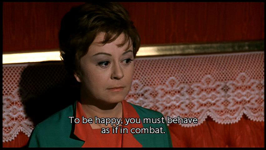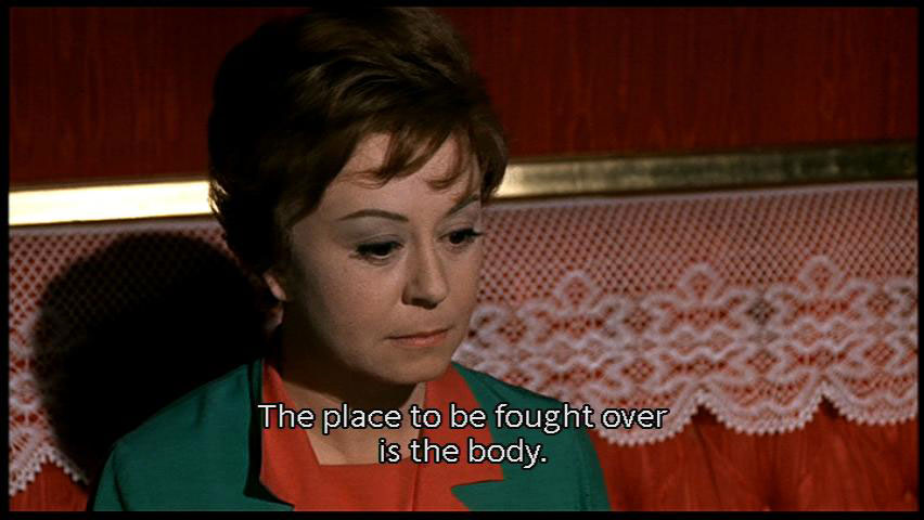 To be happy, you must behave as if in combat. The place to be fought over is the body. [Juliet] The body? [Maestro] And within the body, the shoulders and between the breasts. |