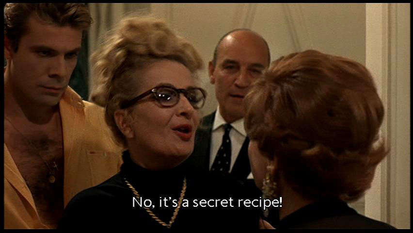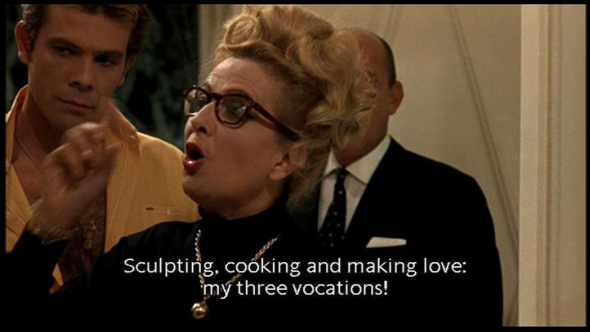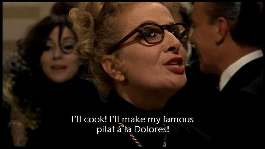 [Man] He opens his mouth and I get angry. It's so stupid! [Dolores] I'll cook! I'll make my famous pilaf a la Dolores! Julietta, have you got any paprika? [Dolores] Even better. [Dolores] No, it's a secret recipe! Sculpting, cooking and making love: my three vocations! |