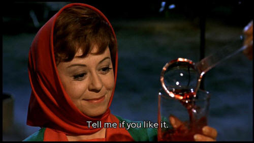 Tell me if you like it. [Juliet] Delicious. What's it called? [Mysterious Man] Sangria. It quenches the thirst of those who drink it. It quenches our secret thirsts too. |