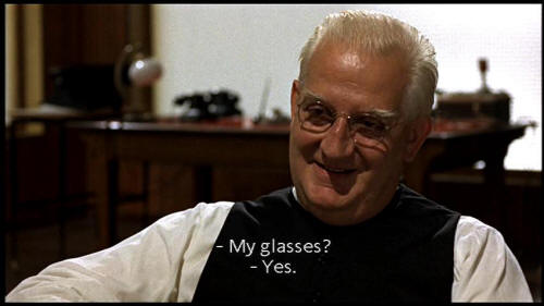 [Juliet] My glasses? Thanks. Does he blush when you look at him? |