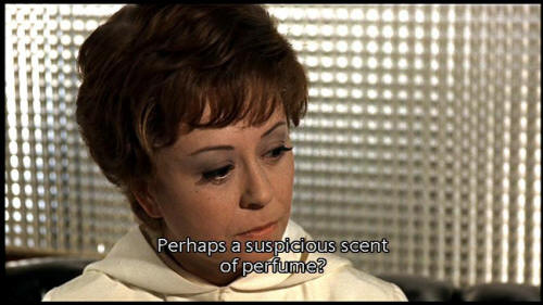 [Psychologist] Thank you. [Detective] Pardon my deplorable indiscretion, signora, but my questions aren't over yet. What about lipstick on his hanky? Perhaps a suspicious scent of perfume? [Juliet] No. [Detective] A scent of beauty cream, hair on his coat |