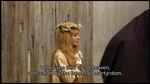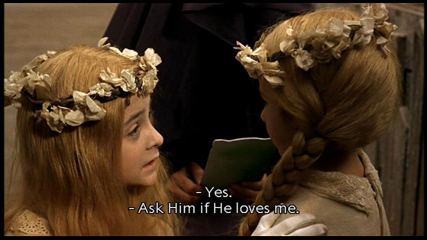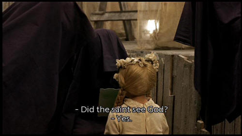 [Little Juliet] Did the saint see God? When she flew up to heaven, consumed by the flames of martyrdom. [Laura] Juliet, swear you’ll tell me?