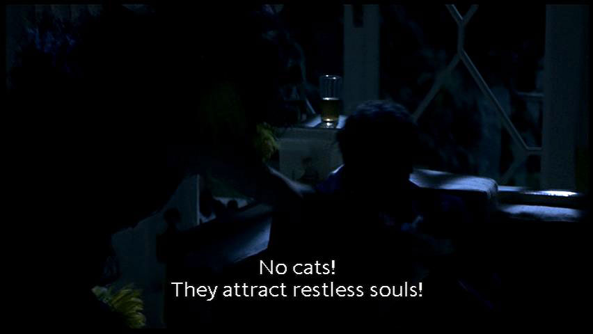 I'll purify the air. [Romolo] Cutie ... [Val] No cats! They attract restless souls! [Romolo] Quiet! Take your seance and -- [Juliet] You two can go to bed now. |