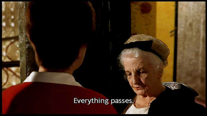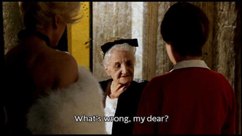 She sits here and sees all, knows all. Granny, this is Juliet. Do you like her? [Granny] What's wrong, my dear? [Suzy] I get spooked. She's a bit of a witch, too. She sees people and knows their secrets. [Granny] Everything passes.