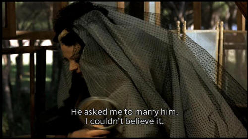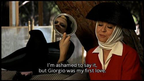 [Suzy] No, never. [Juliet] See, I always thought marriage worked this way: I was all his and he was all mine. I'm ashamed to say it, but Giorgio was my first love. I saw him and fell in love. All I wanted was to be with him. He asked me to marry him. I couldn't believe it. |