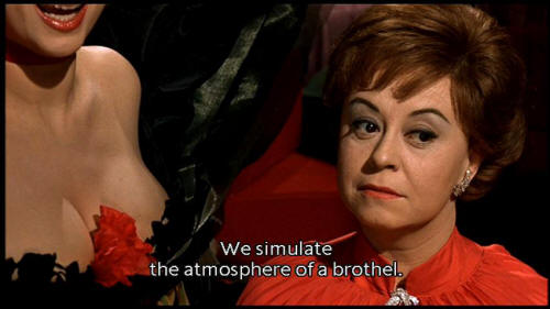 but you'll reach the heights and depths of pleasure. This is my hour. At 11:00 I reach the peak of my desire. [Suzy] This is a game in Lola's honor. We simulate the atmosphere of a brothel. [Juliet] How amusing. |