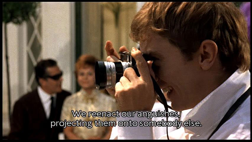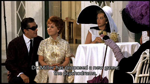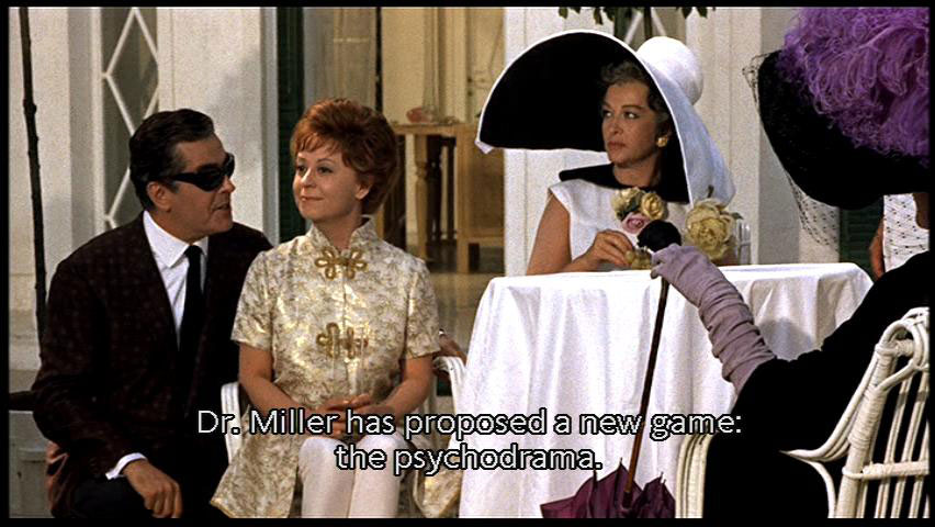 [Giorgio] Care for a drink? [Giorgio] Dr. Miller has proposed a new game: the psychodrama. We reenact our anguishes, projecting them onto somebody else. Interesting. Right? [Adele] I've seen certain people among your guests. |