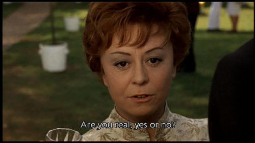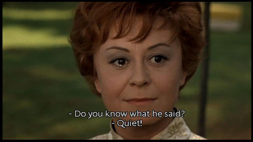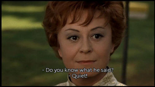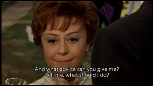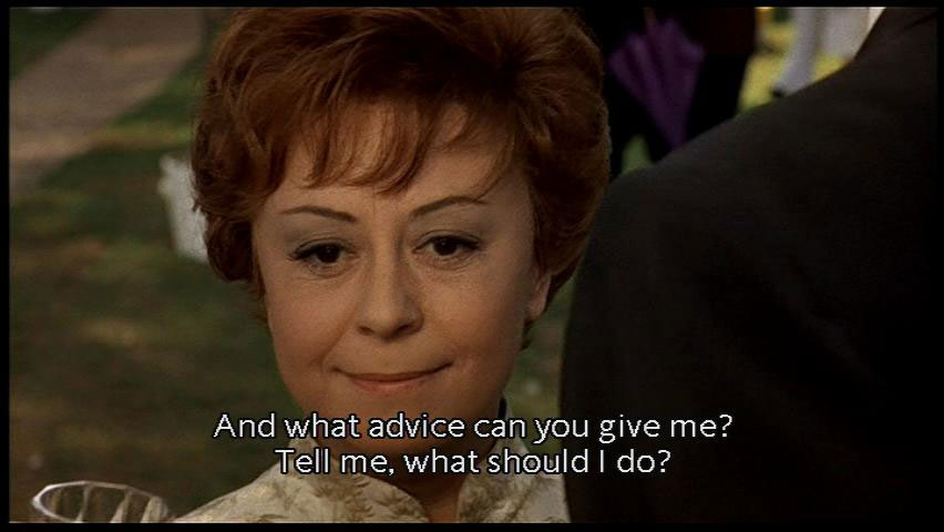 Therefore I am happy." [Juliet] Are you real, yes or no? And what advice can you give me? Tell me, what should I do? [Mysterious Gentleman] I wouldn't know. I just want you to live happily. [Juliet] And Giorgio? Where is he? [Woman] Do you know what he said? [Juliet] Ciao! |