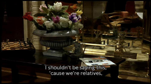 I shouldn't be saying this, 'cause we're relatives, but they make sure a pretty pair. He says he really feels at home here. He handpicked the furniture. All very tasteful. [Maid] [Phone rings] Yes, I'm packing. There's a lady here, waiting. |