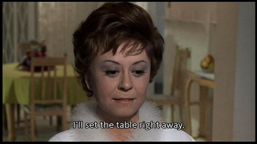 [Teresina] Bonjourno, signora. I'll set the table right away.