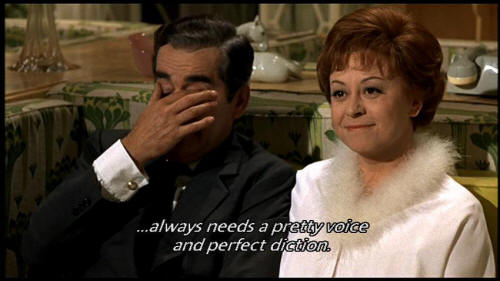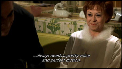 [Juliet] Not even a slice of cake? [Juliet] Sit down here for a while. [TV lady] ... always needs a pretty voice and perfect diction. A good exercise ... [Juliet] Are you tired? [TV lady] Try to pronounce the following words: |