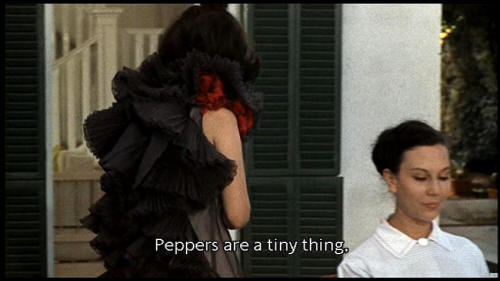 Oh, a wreath of peppers! Such a good little housewife! I am totally useless. I'm so ashamed! Why am I this way, eh? I feel so uprooted, so adrift. Peppers are a tiny thing, yet if I could do it, it might save me. |