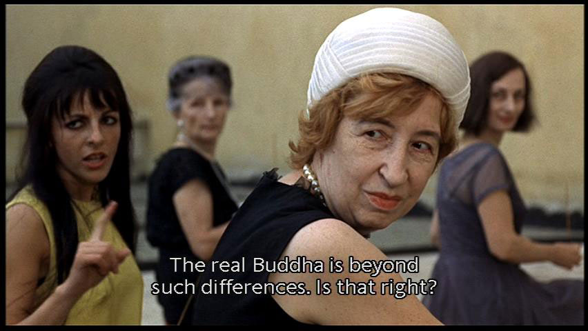 [Woman] The single spirit. The fruit is only appearance. The real Buddha is beyond such differences. Is that right? [Bishma] That's the third step. Now, though, the truth is close and far away at once. So what is this? [Juliet] Isn't it an apple? |