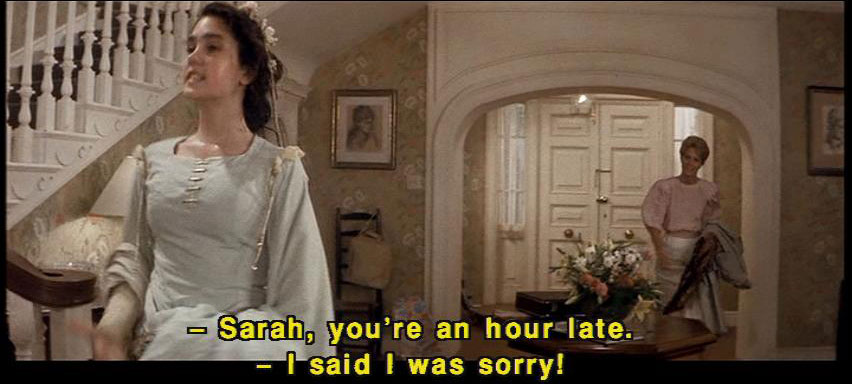 [Sarah] All right. Come on, Merlin. [Sarah] Come on. [Wicked Stepmother] Not the dog. [Sarah] But it's pouring. [Wicked stepmother] Go on, into the garage. [Sarah] Go on, Merlin. Go into the garage. [Sarah] Go. [Wicked Stepmother] Sarah, you're an hour late. [Sarah] I said I was sorry! [Wicked Stepmother] Please let me finish. [Wicked Stepmother] Your father and I go out rarely. [Sarah] You go out every single weekend. |