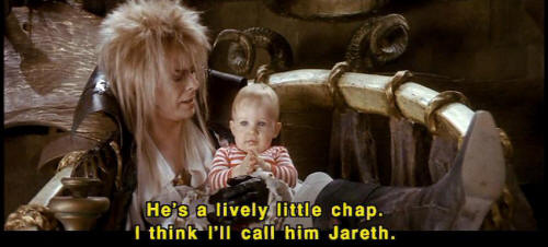 [Jareth] You're welcome. [Jareth] He's a lively little chap. I think I'll call him Jareth. [Jareth] He's got my eyes. |