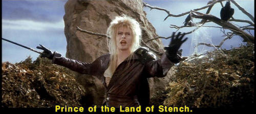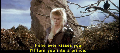 [Jareth] And Hoggle ... [Jareth] if she ever kisses you, I'll turn you into a prince. [Hoggle] You -- You will? [Jareth] Prince of the Land of Stench. [Sarah] Ludo? [Sarah] What's going on? |