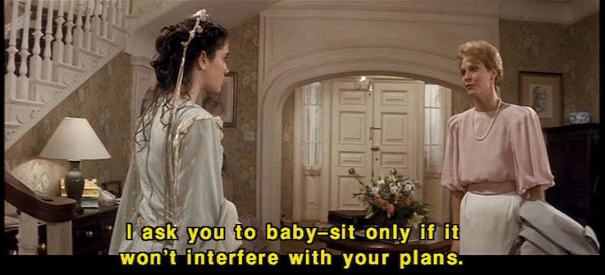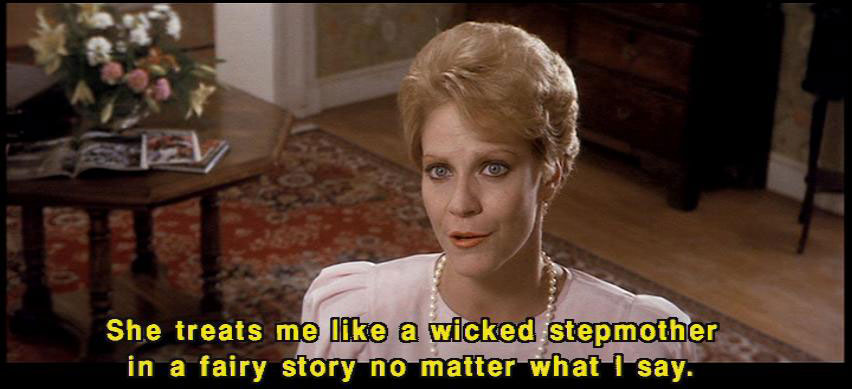 [Wicked Stepmother] I ask you to baby-sit only if it won't interfere with your plans. [Sarah] You don't know what my plans are. You don't even ask me anymore. [Wicked Stepmother] I assume you'd tell me you had a date. I'd like it if you had a date. [Wicked Stepmother] You should have dates at your age. [Father] Sarah, you're home. [Father] We were worried about you. [Sarah] I can't do anything right, can I? [Wicked Stepmother] She treats me like a wicked stepmother in a fairy story no matter what I say. [Father] I'll talk to her. |