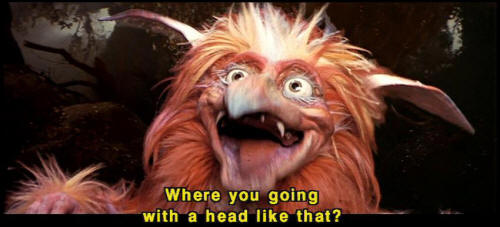 [Goblin] Come on! [Goblin] Hey, hey! Her head don't come off. [Goblin] Of course it doesn't! [Goblin] She's right. It's stuck on. [Goblin] Hey, lady. [Goblin] Where you going with a head like that? [Goblin] Hey, man, I know what we can do. Take off her head! [Goblin] Yeah, let's take her apart. [Goblin] Lady, that's his head. |