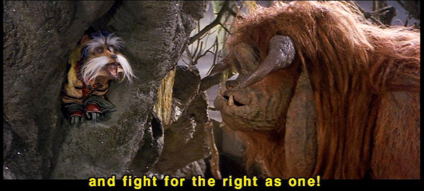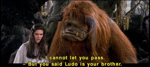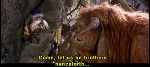 [Sir Didymus] Sir Ludo, if that's thy name, now I, Sir Didymus, yield to thee. [Sir Didymus] Come, let us be brothers henceforth ... [Sir Didymus] and fight for the right as one! [Sir Didymus] Thank you very much. [Ludo] Ludo get brother. [Sir Didymus] Steady. [Sir Didymus] Well met, Sir Ludo. [Sarah] Good. Come on. [Sir Didymus] Wait a minute! You forget my sacred vow, my lady. [Sir Didymus] I cannot let you pass. [Sarah] But you said Ludo is your brother. |