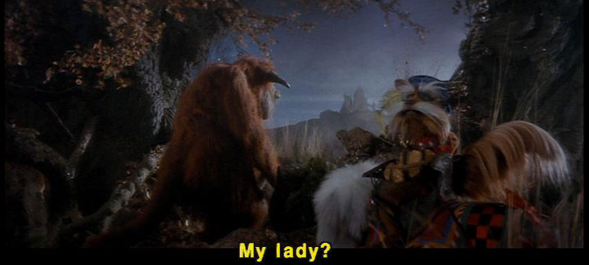 [Sir Didymus] Yea, verily. Whoa, Ambrosious, whoa! [Sir Didymus] The castle doth lie yonder, my lady. [Sir Didymus] My lady? |
