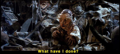 [Hoggle] Oh, she'll never forgive me. [Hoggle] What have I done? |