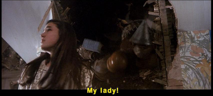 [Sir Didymus] My lady! [Sir Didymus] Are you all right? [Sir Didymus] Fair maiden. Thank goodness thou art safe at last. |