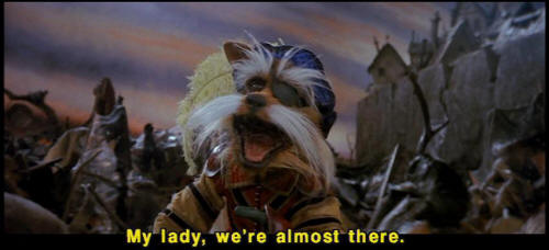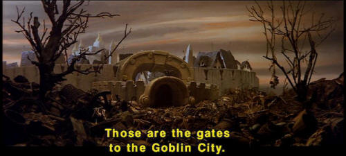 [Sarah] Where are we? [Ludo] Sarah back. [Sir Didymus] My lady, we're almost there. [Sir Didymus] Those are the gates to the Goblin City. [Sarah] Ludo, Sir Didymus. [Sarah] Let's go quickly. We don't have much time. [Ludo] Yeah. [Sir Didymus] Right, Ambrosious. |