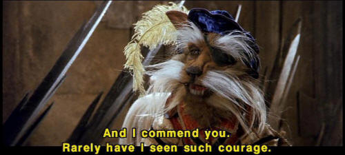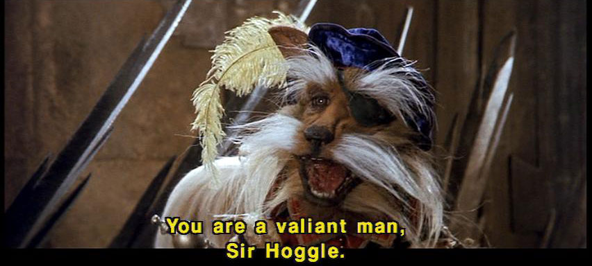 [Sarah] I forgive you. [Hoggle] You -- You do? [Sir Didymus] And I commend you. Rarely have I seen such courage. [Sir Didymus] You are a valiant man, Sir Hoggle. [Hoggle] I am? [Ludo] Yeah. [Ludo] Hoggle and Ludo friends. [Hoggle] We are? [Ludo] Yeah. |