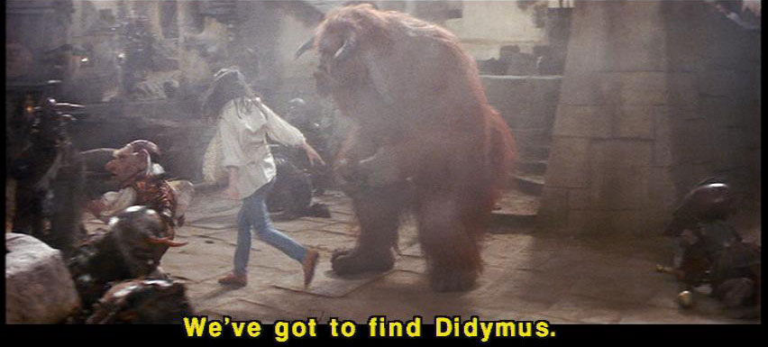 [Goblin] I hit something, yes? No? [Sarah] We've got to find Didymus. [Sarah] Down this way. [Sir Didymus] Charge! |