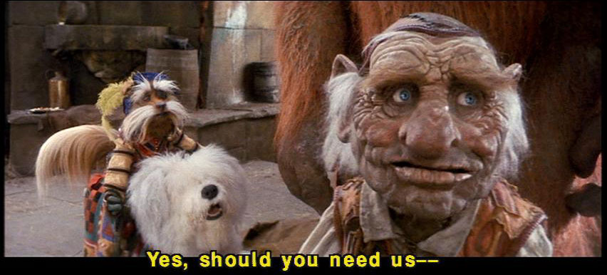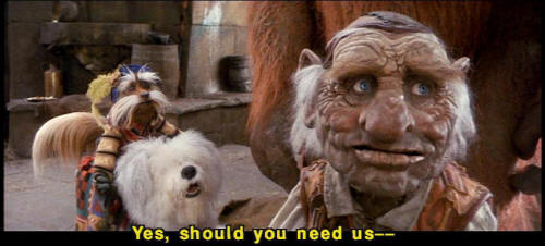 [Sir Didymus] Well, if that is the way it is done ... [Sir Didymus] then that is the way you must do it. [Sir Didymus] But you should need us -- [Hoggle] Yes, should you need us -- [Sarah] I'll call. [Sarah] Thank you, all of you. |
