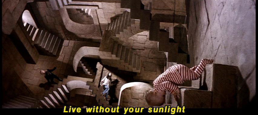 [Jareth] Though I do believe in you [Sarah] Toby! [Jareth] Yes, I do [Jareth] Live without your sunlight |
