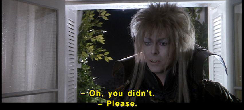 DAVID BOWIE, JENNIFER CONNELLY, MUPPET GOBLINS, AND TOTAL DIS-ENLIGHTENMENT IN JIM HENSON'S "LABYRINTH" -- ILLUSTRATED SCREENPLAY & SCREENCAP GALLERY |