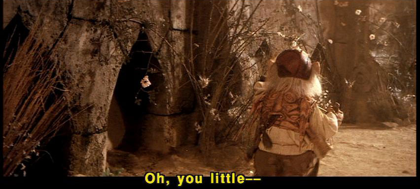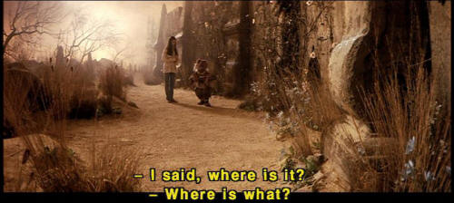 [Hoggle] Maybe. [Sarah] Where is it? [Hoggle] Oh, you little -- [Hoggle] Sixty! [Sarah] I said, where is it? [Hoggle] Where is what? [Sarah] The door. [Hoggle] What door? [Sarah] It's hopeless asking you anything. [Hoggle] Not if you ask the right questions. [Sarah] How do I get into the labyrinth? |