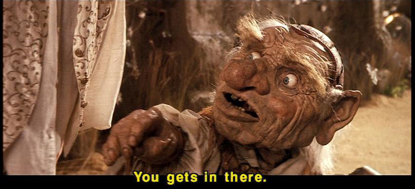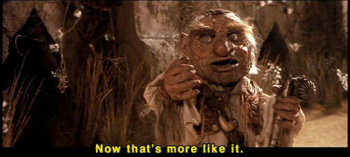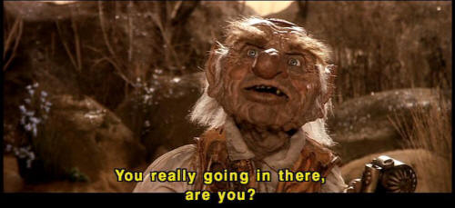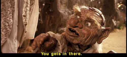 [Hoggle] Now that's more like it. [Hoggle] You gets in there. [Hoggle] You really going in there, are you? [Sarah] Yes. [Sarah] I'm afraid I have to. |