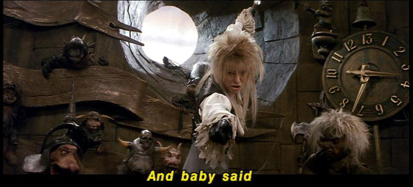 DAVID BOWIE, JENNIFER CONNELLY, MUPPET GOBLINS, AND TOTAL DIS-ENLIGHTENMENT IN JIM HENSON'S "LABYRINTH" -- ILLUSTRATED SCREENPLAY & SCREENCAP GALLERY |