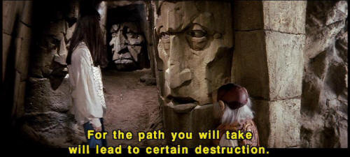 [Hoggle] Especially when you're on the right track. [Rock] Oh, no, you're not. [Hoggle] Oh, shut up. [Rock] Sorry. Just doing my job. [Hoggle] You don't have to do it to us. [Rock] Beware for -- [Hoggle] Just forget it. [Rock] Oh, please, I haven't said it for such a long time. [Hoggle] Oh, all right, but don't expect a big reaction. [Rock] No, no, no, of course not. [Rock] For the path you will take will lead to certain destruction. |