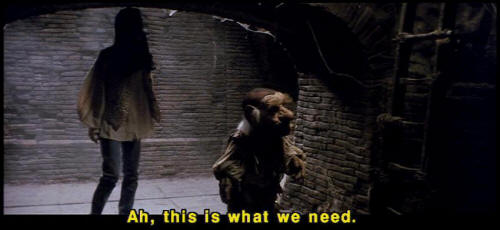 [Hoggle] You sure got his attention. [Hoggle] Ah, this is what we need. [Hoggle] A ladder. Follow me. [Sarah] How can I trust you now that I know you were taking me back to the beginning? [Hoggle] I wasn't. |