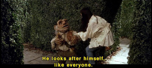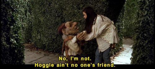 [Hoggle] No, I'm not. Hoggle ain't no one's friend. [Hoggle] He looks after himself, like everyone. [Hoggle] Hoggle is Hoggle's friend. [Sarah] Hoggle, you coward! [Sarah] Well, I'm not afraid. [Sarah] Things aren't always what they seem in this place. [Goblin] Try on this for size, you big yeti! [Goblin] We've got you now, fuzz ball! |