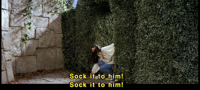 [Goblin] All together now. [Sarah] If only I had something to throw. [Goblin] Sock it to him! Sock it to him! |