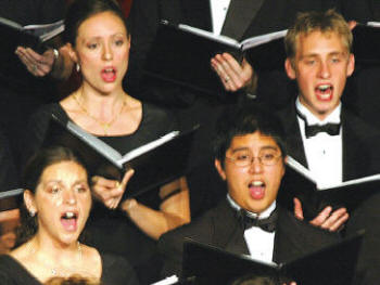 In November, the Music Department presented the SVU Flute Choir in concert, directed by Professor Launa Whitehead. The performance featured music from Rodgers & Hammerstien's The Sound of Music, Floris Suite by Catherine McMichael, Mozart's Ave Verum Corpus, and Alexander's Ragtime Band by Irving Berlin. Students played a variety of flutes, from the dainty piccolo, to the elegant alto flute, to the massive bass flute. The concert delighted those in attendance with inspiring and invigorating music. SVU's Chamber Choir, directed by Dr. Keith Bradshaw, performed at the Christmas Lighting ceremony at the Washington, D.C. Temple SVU's Chamber Choir was busy in December as they began the month with a trip to Kennsington, MD. The choir was one of the fortunate performing groups invited to share their talents during the Christmas lighting ceremony at the Washington, D.C. Temple. Under the direction of Dr. Keith Bradshaw, students sang for thousands of people from around the world who gathered for the Temple's annual tradition. Later in the month, the Chamber Choir held its annual Christmas Concert in Chandler Hall. Community members, staff, faculty, and families came to take part in the festive celebration. The staff party reading of A Christmas Carol (from left to right): Paul Wright -- Narrator; David Dwyer -- Jacob Marley; Morgen Reynolds -- Ghosts of Christmas Past & Future; Keith Bradshaw -- Ghost of Christmas Present; Robert Stoddard -- Ebenezer Scrooge; Robert Huch & Richard Whitehead -- Collectors for the Poor; Nathan Dransfield -- Tiny Time; Scott Dransfield -- Bob Cratchit; Gavin Dransfield -- Peter Cratchit; Andrea Dransfield -- Mrs. Cratchit To wrap up the season, SVU employees were treated to a staged abridged reading of A Christmas Carol, by Charles Dickens. The reading took place during the staff Christmas party, which was Victorian themed and organized by English Professor Carrie Brotherson and members of the SVU Women's Society. Staff, faculty, and even children joined their talents together for a rich performance filled with the Christmas Spirit. CHAMPION KNIGHTS This fall, Southern Virginia's valiant Knights claimed the school's 22nd and 23rd National Championships: one for women's Cross-Country and one for women's Soccer.
